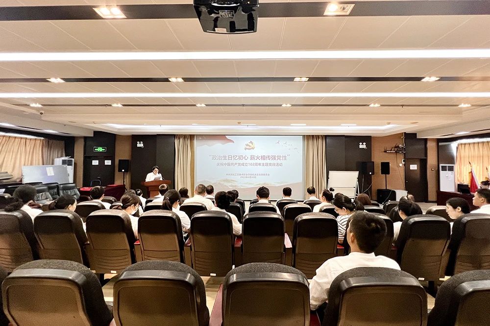 百年风雨红旗更艳,万里江天岁月如歌。为隆重庆祝中国共产党成立102周年,持续推动主题教育走深走实,进一步强化党员干部身份意识、宗旨意识和责任意识,激发爱党爱国之情,坚定为党育人、服务师生初心,6月30上午,九游娱乐官网登录入口机关党总支在竞秀校区7楼学术报告厅开展了“政治生日忆初心 薪火相传强党性”主题党日活动。学院党委书记殷永桥、纪委书记王立新、党委委员副院长杨庆华以普通党员身份同机关党总支全体党员共计30余人参加活动。活动由组织部支部宣传委员兼统战委员郭金萍主持。