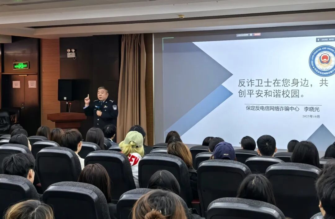 为提升学生的反诈意识与自我保护能力,筑牢校园安全防线,2025年10月15日,我系邀请保定反电信网络诈骗中心警官李晓光为全系师生开展“反诈卫士在您身边,共创平安和谐校园”主题安全讲座。