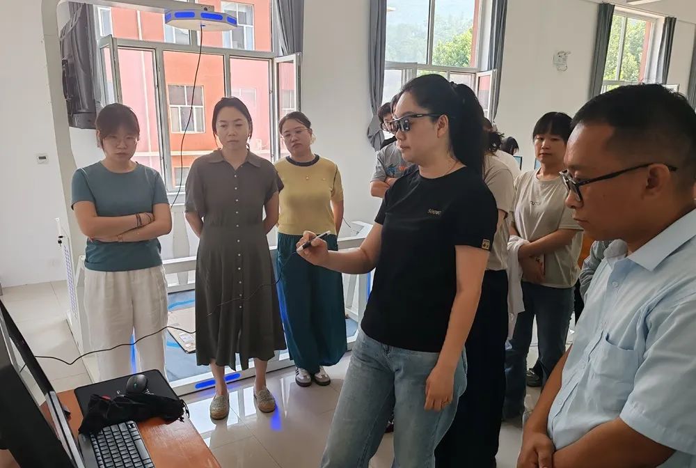 中望公司的技术人员为我系专业教师讲解了一系列设备操作演示流程,包括智慧大屏的使用技巧、中望建筑装饰工程实训平台的操作流程以及VR设备的使用方法,帮助教师们掌握了借助虚拟现实技术,引导学生体验不同的建筑场景与设计效果的方法。